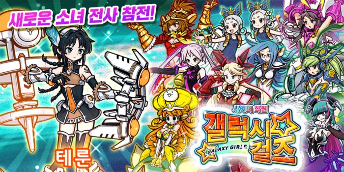 ... [자료제공 = 포노스]주식회사 포노스(대표: 츠지코 요리카츠)는 병맛&귀염 타워디펜스 게임을 대표하는 '냥코 대전쟁'에서 4월 8일 11시부터 개최된 레어 뽑기 시리즈 ‘사이버 학원 갤럭시 걸즈’에 신캐릭터가 등장하였다고 밝혔다.