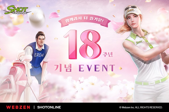 ... 이번 이벤트는 크게 5종류의 이벤트로 구성되어 있으며 18주년 보상 상자와 미니어쳐 골드 티켓, 최상급 18홀 패키지 III 등 다양한 보상을 제공한다. 4월 7일(목) 정기점검 이후부터 5월 5일(목)까지 '샷온라인' 출시 18주년 기념 출석 이벤트가