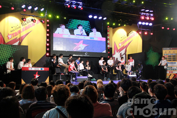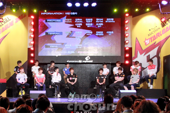 ...21일 용산 e스포츠 상설경기장에 '옥션 올킬 스타리그 2012' 16강 조 지명식이 진행됐다. 조 지명식에서는 스타리그 우승자인 허영무(삼성전자칸)와 준우승자 정명훈(SK텔레콤T1)이 각각 1차 지명권을 행사해 박수호(MVP)와 임재덕(LG-IM)을 A조와 B조에 배치시켰다.