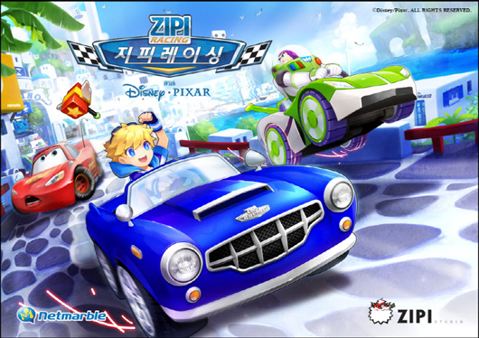... '지피레이싱'은 온라인 게임 최초로 디즈니·픽사의 캐릭터가 게임 내에 등장하는캐주얼 레이징 게임으로, 디즈니·픽사의 캐릭터가'지피레이싱'에 NPC, 배경은 물론 플레이 가능한 캐릭터와 탈것으로 등장한다. 넷마블은 이 게임은 유니티3D 엔진으로 개발된 최초의 온라인 레이싱