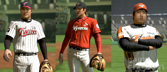 ...여기에는 대한민국을 대표하는 투수 SK 와이번스 김광현, 한화 이글스 류현진, LG 트윈스 봉중근이 등장한다. 하지만 공개된 자료에 따르면 이들은 모두 우완투수로 그려졌다. 이들 선수들은 실제로는 좌완투수로오른손에 글러브를 착용해야 하지만 스크린 샷에는 왼손에 글러브를 끼고