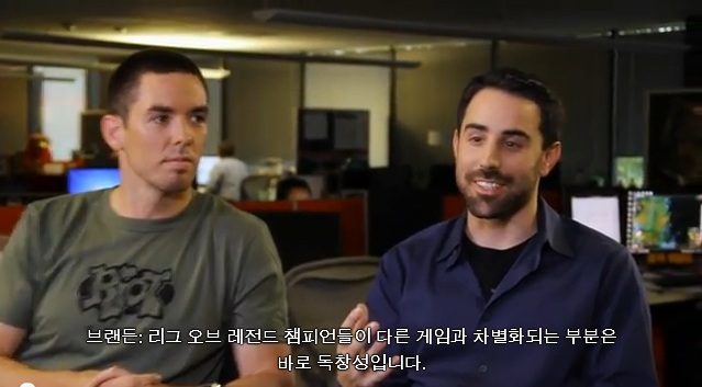 ... 브랜든 벡은 “LOL 챔피언들이 다른 게임과 차별화되는 부분은 독창성이다”며 독창성에 대해서 강조했다. 또 다른 창업자마크 메릴은 “우리는 좋은 아이디어를 발굴해서 발전시키고, LOL 챔피언이 탄생할 때까지 계속해서 수정하는 과정이 좋다”고 밝히기도 했다. 영상 속 주