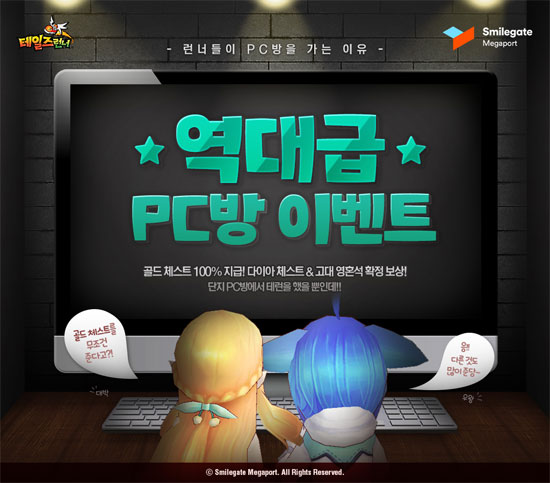 ... 이용자들은 ‘PC방 미션 징표’를 모아 ‘타락한 고대 영혼석’ 등으로 교환할 수 있고, ‘PC방 선물 상자’를 사용해 ‘삐에로 파티 상자’, ‘다이아 체스트’ 등의 최고급 아이템을 획득할 수 있다. 스마일게이트정상기 게임사업팀장은 “이번 프로모션을 통해 평소에 갖기 힘들었던