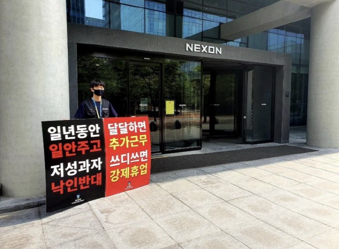 ... 넥슨은 해당 기간 동안 교육을 위한 월 200만 원의 실비를 지원하겠다고 밝혔다. 노조와 휴업 대상자는 당사자 동의 없는 부당한 조치라 반발했다. 노조 측은 "부분 휴업 명령은 회사가 행할 수 있는 최악의 조치 중 하나"라며 "일을 시키고 성과