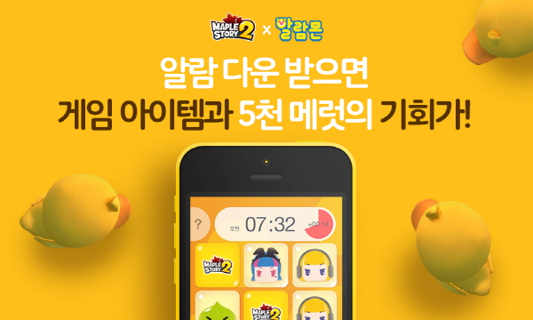 ... 사용자가 설정한 시간에 음악과 진동이 울리는 동시에 간단한 방식의 게임이 진행된다. 넥슨은 이번 제휴를 기념해 오는 9월 30일까지 ‘알람몬’ 애플리케이션에서 ‘메이플스토리2’의 알람을 다운로드 하는 모든 유저에게 물약, 경험치 상승 아이템 등으로 구성된 성장 지원 패키지를 선물