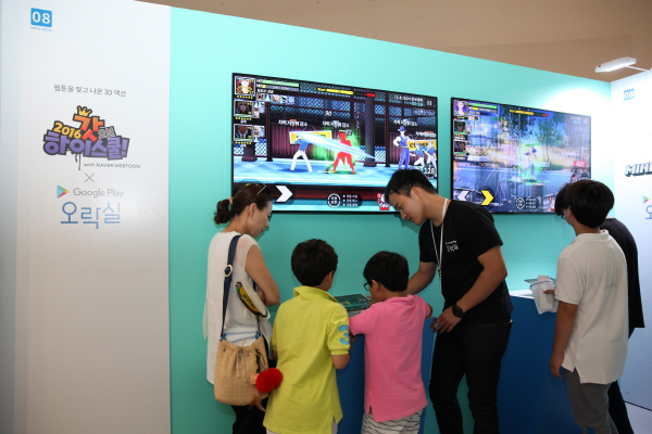 ...'구글플레이 오락실'은 각기 다른 4개 컨셉의 게임 체험 공간으로 구성되었는데, '2016갓오하'는 '스톤에이지'와 '마인크래프트' 등과 함께 캐주얼 코너에 자리잡았다. 특히 '마음의 소리'와 함께 웹툰을 원작으로 한 모바일 게임이 나란히 배치돼 보는 이에게 색다른 즐거움을 선사