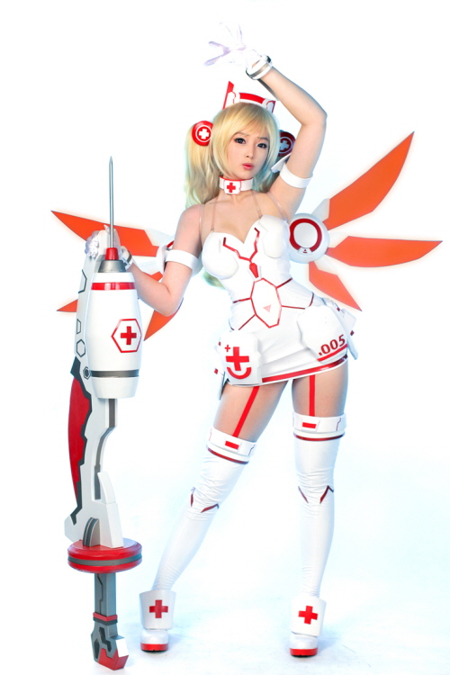 ... 'R-사이버 메딕'의 상징인 간호복과 커다란 주사기를 활용해 캐릭터의 매력을 한껏 뽐내고 있다. 'R-사이버 메딕'은 주사기로 HP와 SP를 채워주는 캐릭터다. [최지웅 기자 csage82@chosun