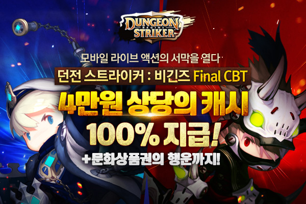 ...actoz. com/Games/Dsm/Cbt2)를 통해 누구나 참여할 수 있다. 던전스트라이커:비긴즈는 온라인게임 '던전스트라이커'의 IP를 활용한 모바일게임이다