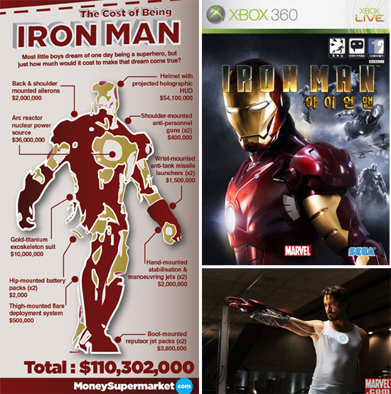... 영국의 가격비교 사이트 ‘머니슈퍼마켓’은 최근 아이언맨이 착용한 장비를 하나하나 분석해 그 가치를 측정했다. 총 10가지로 분류된 장비 중 가장 값비싼 건 홀로 그래픽 프로젝트가 장착된 HUD(헤드 업 디스플레이)헬멧으로, 무려 5410만 달러(약 614억원)에 이른다.