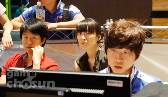 ... e스타즈 서울 2012가 열리는 서울 강남구 코엑스 D홀. WCG 예선전이 한창인 가운데 감독과 코치들도 선수들의 경기를 유심히 지켜보고 있다. 이 중 김가을 감독과 최우범 코치(이상 삼성전자 칸)가 웅진 소속인 윤용태의 경기를 주목하고 있어 눈길을 끌고 있다