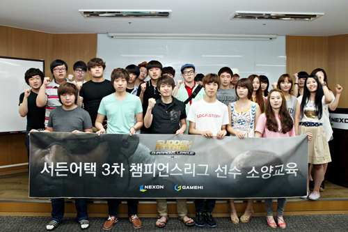 ... 넥슨의 한 관계자는 "이번 소양 교육에서는선수로서 가져야 하는 교양을 비롯해 매체와의 인터뷰방법 등 대외적 활동에 필요한 내용이 주를 이뤘다"며 "또한 대회 규정과 경기에서 펼쳐질 맵에 대한 내용도 포함됐다"고 밝혔다. 한편 총 상금 2억 3천만 원을 걸고 오는 30일 부