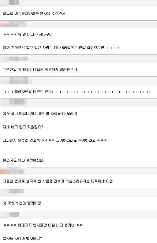 ... 블리자드는유저들의성토에환불 정책을 발표했지만 이마저도 유저들을 만족시키지 못했다. 숱한 화제를 일으킨디아블로3무적 버그 등장에 유저들은 비아냥 섞인 댓글을 남겼다. 닉네임 '정강이***'는 “이번 무적 버그는 블리자드의 이벤트인 것 같다”고 했고