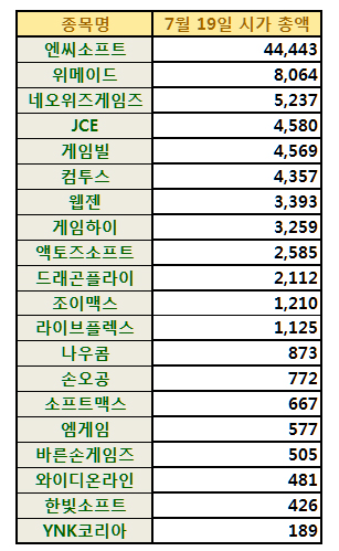 ... 3사의 기업가치는 중견 온라인게임 기업으로 꼽히는 웹젠(3393억원)과 게임하이(3259억원), 드래곤플라이(2112억원) 등 보다 약 1000억원~2000억원 높다. 상위 순위를 기준으로 볼 때는 3사는 엔씨소프트(4조4443억원), 위메이드(8064억원), 네오위즈게