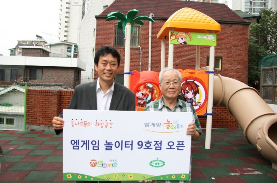 ... 엠게임 놀이터 9호점은 ‘서울성로원’의 미취학 및 초등학교 아동들이 안전하게 놀이 활동을 할 수 있는 종합 놀이대를 비롯해 그네∙스프링 바운스 등의 놀이시설이 구축돼 있다. 서울성로원 김종찬 원장은 “서울성로원은 미취학 및 저학년의 아동들이 많이 있어서 야외 놀이 시설 확