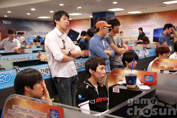 ... 기대를 모았던 SKT의 김택용과 제8게임단의 이제동, 그리고 삼성전자칸의 송병구는 모두 예선에서 탈락, 다음 시즌에선 '택뱅리쌍' 중 듀얼 시드를 확보한 이영호(KT롤스터)만 볼 수 있게 됐다. 다음은 게임조선 카메라로 담아본 예선 현장의 모습이다. ▲ 게임에 열중하
