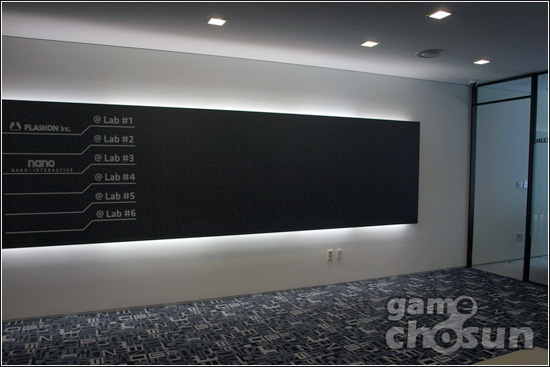... ▲ 입구의 휴게공간 NPC는 서울 2호선 선릉역 4번 출구 앞에 위치해 편리한 주변 환경을 자랑한다. 내부는 흑백의 심플한 분위기에 6개 사무실과 두 개의 회의실, 탕비실, 보안 시스템이 갖춰져 있다. 현재 NPC에는 플라스콘(대표 조영거, 차경묵)과 나노인터렉티브(