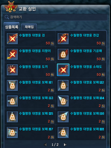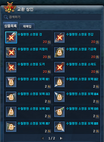 ... 수월평원에서 만나게되는교환 상인은 수월평원-해나무마을에서 만날 수 있다. 수월평원에서 대영웅패로 교환할 수 있는 수월평원 대영웅 아이템에 대해서 알아보겠다. 영웅패로 교환하는 수월대영웅 무기와 보패, 옷 총정리 수월대영웅패로 교환하는 수월대영웅 무기, 보