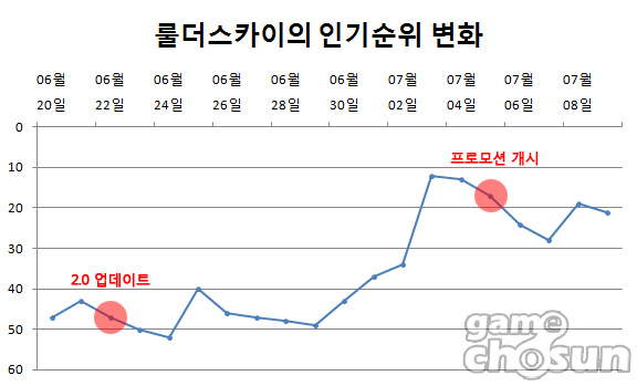 ... 웹보드 게임과 웹브라우징 게임은 제외된 리스트입니다. 7월 첫 번째 주(7월 2일~8일) 온라인게임 인기순위에서는 '리그오브레전드'의 반등과 '디아블로3'의 거듭된 하락이 눈에 띕니다. 두 게임은 지난 주 '블레이드앤소울'의 정상 진입으로 나란히 하락세를 보였으나 '리그