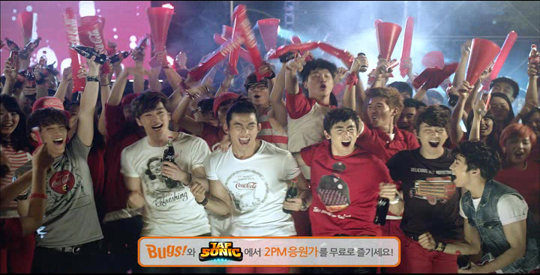 ... 이 중 음악과 게임을 통한 프로모션은 음악포털 벅스와 리듬액션게임 탭소닉을 서비스 중인 네오위즈인터넷과 함께할 예정이다. 이번 제휴를 통해 2PM이 부른 올림픽 응원가가 벅스를 통해 공개됐다. 또한 11일부터 내달 12일까지 한 달간 무료 다운로드와 스트리밍을 제공된다