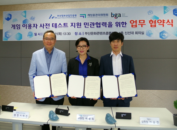 ...협약에 따라 게임위는 부산지역 게임관련 학과 재학 중인 대학생들 위주로 구성된 ‘좋은게임지킴이(Good Game Group, GGG)’를 대상으로 테스트 인력을 지원하고, 부산정보산업진흥원은 테스트 장소와 장비 등을 지원하며, 부산게임협회는 부산경남지역 출시전 게임물의 사전 테스트