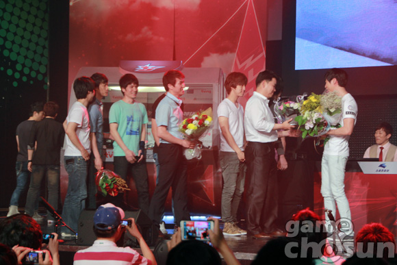 ... 이윤열은 3일 용산 상설경기장에서 오영종과의 경기를 마친 뒤 은퇴 기념 영상과 동료들의 축하 꽃다발을 선물로 받았다. 이는 온게임넷이 은퇴식까지는 아니라 하더라도 스타리그 3회 우승자를 예우하는 차원에서 준비한 선물이었다. 이에 이윤열과 친분을 갖고 있던 올드 프로게이머