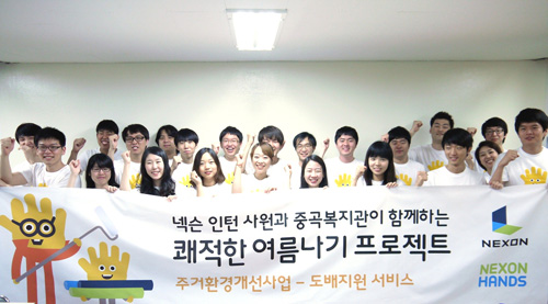 ...이날 넥슨 인턴사원 30여명은이 중곡복지관 직원 및 도배기술자들과 함께 중곡동 인근 가정을 방문해 청소와 도배 보수 등 환경 개선 작업을 펼쳤다. 봉사활동에 참여한 인턴사원 이윤관은 "몸은 고단하지만 할머니 할아버지께서 깨끗한 집에서 여름을 나실 수 있다 생각하니 뿌듯하다”며