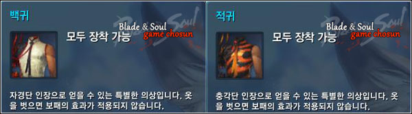 ... - 충각단 인장 충각단 인장은 자경단원복을 입고 거암골의 충각단을 처치하면 '은광일'과 '열포', '빙포'가 등장하는데, 은광일을 처치하면 충각단 인장을 얻을 수 있다. ▲ 이 백귀와 적귀를 얻기 위해서 자경단과 충각단 인장을 얻어야 한다 ■ 곤족 여자 백귀 착용 스크린