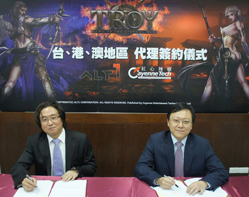 ...알트원(대표 홍창우)은 카이엔테크(대표 조 텡)와 MMORPG '트로이'의 대만, 홍콩, 마카오 퍼블리싱 계약을 체결했다고 25일 밝혔다. ▲ 알트원 홍창우 대표(좌), 카이엔테크 조 텡 대표(우) 대만 온라인게임 퍼블리셔인 카이엔테크는 이번 계약을 통해 알트원의 '트로이