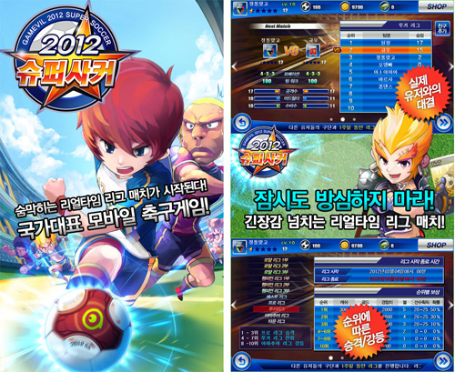...게임빌(대표 송병준)은 모바일 소셜 축구게임 '2012슈퍼사커'를 애플 앱스토어에 글로벌 출시했다고 22일 밝혔다. '2012슈퍼사커'는 이용자간 경쟁의 묘미를 더한것이 특징이다. 유저간 순위 경쟁과 용병 고용, 구단 관리 등 '게임빌 라이브'를 통한 소셜 기능을 제공한다