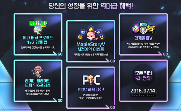 ... 한편, ‘메이플스토리’에서는 여름 대규모 업데이트 ‘메이플스토리V’를 앞두고 오는 사전 예약 이벤트가 진행된다. 오는 12일까지 사전 예약을 완료하는 유저에게는 펫 ‘핑크 렛서판다’와 펫장비 ‘병아리’를 비롯해 다양한 아이템이 주어진다. [조상현 기자 neulpeu
