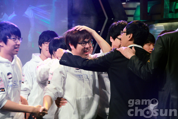 ... 아무도 예상하지 못했던 결과다. TSL은 5일 목동 곰TV 스튜디오에서 진행된 '2012 핫식스 글로벌 스타크래프트2 팀 리그(GSTL)' 시즌2 1라운드 B조 경기에서 LG-IM을 상대로 5대4의 승리를 거두며 2라운드 진출에 성공했다. 최근 생애 첫 코드S에 오르며