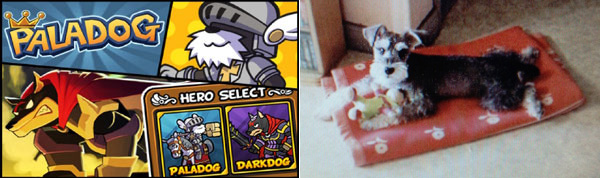 ... ▲ 게임 속 '팔라독'(왼쪽 위)과 실제 모델 '앙리'(오른쪽) 앞서김 대표는 언론과의 인터뷰를 통해'팔라독' 캐릭터가 키우던 강아지를 모델로 했다고 밝힌 바 있다. 공개된 실제 모델인 '앙리'는 게임 속 '팔라독'처럼 잿빛 털에 하얀 눈썹과 입가를 가지고 있다. '앙