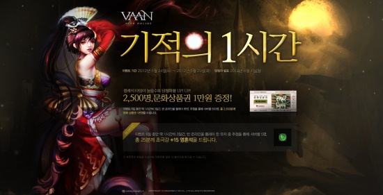 ...드래곤플라이(대표 박철우)에서 서비스하는 성인용 판타지 MMORPG ‘반 온라인’이 희귀아이템과 경험치, 문화상품권 등을 증정하는 풍성한 이벤트로 유저들을 찾아간다. 오는 29일까지 6일간 진행되는 ‘기적의 1시간’ 이벤트는 이 기간 중 하루 1시간 이상 씩 3일 이상 접