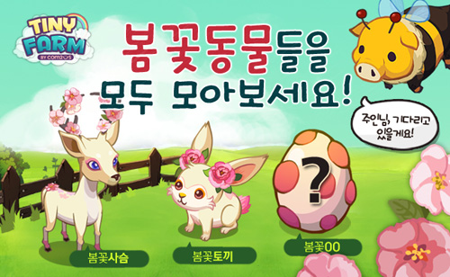 ...컴투스(대표 박지영)는 스마트폰 소셜게임 '타이니팜'에 새로운 '봄꽃동물'을 추가했다고 24일 밝혔다. '봄꽃동물 시리즈'의 마지막 업데이트에서는 '봄꽃뿔양'이 등장했다. '봄꽃뿔양'은 뿔에 화려한 꽃송이를 장식한 것이 특징이다