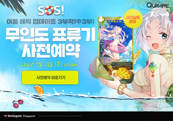 ... 또 참가자 중 10명을 추첨해 특별 제작된 한정판 ‘수영복 사희 베개커버’를 제공한다. 더불어 스마일게이트메가포트는 이번 ‘SOS! 무인도 표류기’ 업데이트 내용을 미리 만나볼 수 있는 프로모션 영상을 공개했다. 해당 영상은 무인도에 표류하게 된 큐라레의 대표 사서 3인방인