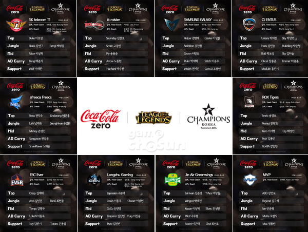 ... 삼성도 '헬퍼' 권영재와 '룰러' 박재혁 영입으로 각각 탑과 원딜을 강화했으며 진에어나 아프리카, 락스도 약간의 변화를 줬다. 지난 시즌 많은 선수들을 보유해 스타군단으로 불린 롱주게이밍은 팀의 무게를 줄였다. '플레임' 이호종과 '프로즌' 김태일이 빠졌으며 스포티비게임즈 해설