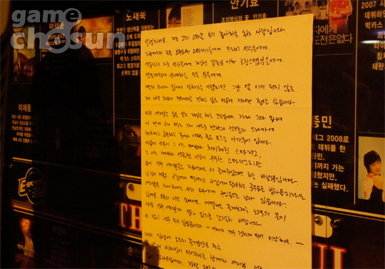 ... 이하 이름모를 팬이 보낸 편지 전문 안녕하세요. 저는 그저 스타를 보기 좋아하는 흔한 사람입니다. 지금까지의 모든 브루드워 스타리거들에게, 프로리그 선수들에게