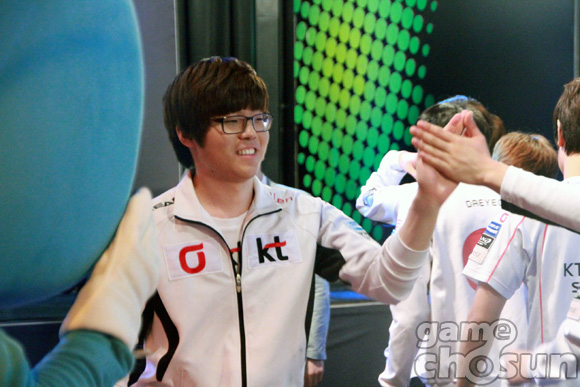 ... 정우용과 맞붙은 1세트에서 고위기사의 '환류'를 완벽하게 활용하며 테란의 의료선을 완벽하게 막아냈다. 이어진 운영능력도 깔끔해 추적자의 점멸을 적극 활용하며 승리를 따냈다. 하지만 뒤이어 출전한 황병영과 이영호가 김준호와 김정우에게 연달아 패해 에이스결정전으로 밀리고 말았다