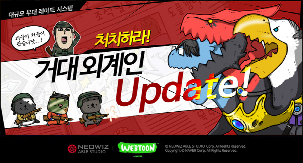 ...부대원들은 각자 보유한 히어로를 전략적으로 배치하고, ‘거대외계인’모드 에서만 사용할 수 있는 전용 스킬 3가지를 활용해 ‘거대외계인’을 공략할 수 있다. 전용 스킬을 강화해 레벨을 높일 수록, 함께 공격하는 부대원이 많을수록 공략이 쉬워진다. 낮은 레벨의 외계인을 처치하면 다