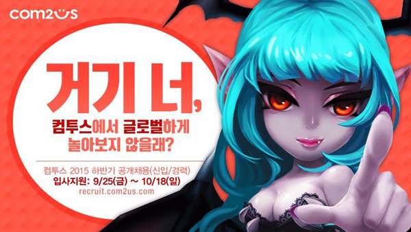 ... 컴투스(대표 송병준)는 25일 자사의 2015년 하반기 신입 및 경력직 공개 채용을 실시한다고 밝혔다. 이번 하반기 공채는게임 제작과 플랫폼 개발 및 게임 사업 부문 등을 모집한다. 지원자는 2016년 2월 졸업 예정자 및 기졸업자라면 누구나가능하며 실력과 열정