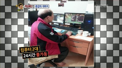 ... 특히 이 할아버지는 게임 플레이를 위해 컴퓨터 2대를 24시간 풀가동하는 것은 물론 아이템 구입을 위해 4천만원을 사용했다고 밝혀 주위를 놀라게 했다. 이날 방송에 함께 출연한 할아버지는 "이혼했으면 했지 게임은 손 못 놓겠다"며"게임 비용은 마누라 모르게 비자금으로