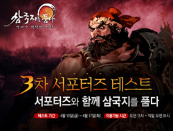 ... 3차 서포터즈 테스트 기간 동안 넥슨은 보다 적극적인 유저의견 수렴을 위해 설문조사에 참여하거나 게임플레이 후 외부 커뮤니티에 리뷰를 작성한 유저를 추첨해 '삼품 미니 병풍'과 문화상품권을 증정할 계획이다. 또, PvP 특화 콘텐츠인 '군영전' 및 '약탈' 콘텐츠에 대한 의