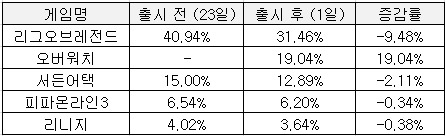 ... 이 게임은 지난 24일 출시와 함께 11. 70%로 단숨에 4위로 올라섰다. 이후 25일 13