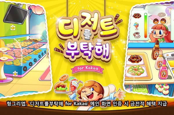 ... 이번 이벤트는 '가게 오픈일을 기념하세요!'로 '디저트를부탁해 헝그리앱' 커뮤니티에 이벤트 기간 동안 게임 메인 인증화면과 게시글을 작성하면 추첨을 통해 헝그리앱 내에서 현금처럼 사용할 수 있는 밥알 포인트를 지급한다. 본 이벤트는 9월 28일까지 진행되며 자세한 내용