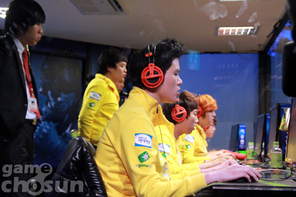 ... 6세트까지 3대3으로 삼성전자와 접전을 펼친 KT는 마지막 승부를 가르는 에이스결정전에서 이영호의 출전을 아끼며 김대엽을 내보냈고, 기회를 얻은 김대엽이 송병구를 보기 좋게 격파하며 팀에 승리를 안겼다. 기선을 제압한 쪽은 삼성전자였다. 삼성전자는 선봉으로 송병구를 출전시키