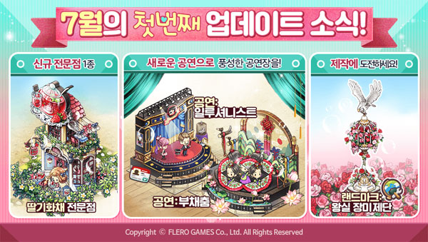 ... 해당 공연을 통해 다양한 버프효과를 얻을 수 있다. 회사 측은 이번 업데이트를 기념해 7월 6일부터 8월 2일까지 약 한달 간 '접속 이벤트'를 진행한다. 이벤트 기간 동안 게임 접속 일수에 따라 골드, 하트, 시드, 채집 재료, 채집 도시락 등 다양한 아이템이 지급된다