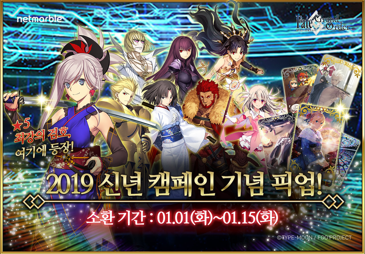 ... 15일까지 진행되는 이번 픽업에서는 ‘미야모토 무사시’를 비롯해 총 8기의 서번트가 특정 날짜에 맞춰 등장한다. 또 이용자가 ‘미야모토 무사시’를 서포트에 편성해 플레이할 수 있는 체험 퀘스트도 추가한다. 새해를 맞아 신규 이용자의 플레이를 돕기 위한 ‘스타트 대시!’ 캠페인도
