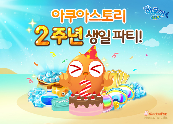 ... 또 이벤트 기간 중 게임 내 '축하해요' 버튼을 누르면 추첨을 통해 총 2000명에게 유명 브랜드 커피와 아이스크림 등이 담긴 기프티콘을 선물한다. 박가혜 아쿠아스토리 서비스 PM은 “고객들께 감사의 의미를 담은 이번 이벤트에 이어 다양한 업데이트와 서비스로 보다 많은 SN