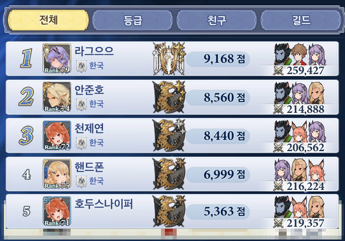 ... 신규 업데이트 이후 최강의유저는 누구인지 확인해보자. * 시즌 종료 40분~20분 내외의 시각을 기준으로 기록한 것으로최종 순위와 다소 차이가 있을 수 있습니다. * * 전투력 등각종 순위는 결투장 랭킹 TOP5에 입성한 게이머 기준이므로 누락된 게이머가 있을 수