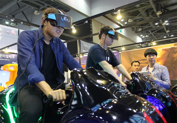 ... 특히 신성장동력원으로 각광받고 있는 가상현실(VR)을 활용한 게임과 콘텐츠를 대거 만나볼 수 있었다. 소니인터랙티브코리아는 오는 10월 출시 예정인 VR헤드셋 '플레이스테이션 VR'을 선보였고, 드래곤플라이는 인기 1인칭 슈팅(FPS) 게임 '스페셜포스' IP를 기반으로 제작